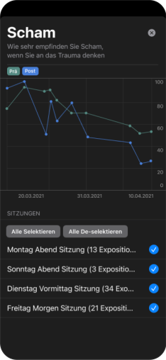 During use of Morpheus, statistics are collected via questionnaires. These can be discussed in the therapy session with the therapist. The joint review supports the therapeutic relationship and is at the therapist's discretion.
